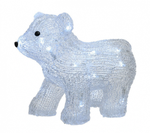 A figura Urso Polar, 20 leds e acrílico translucído tem programador de 6 horas.
